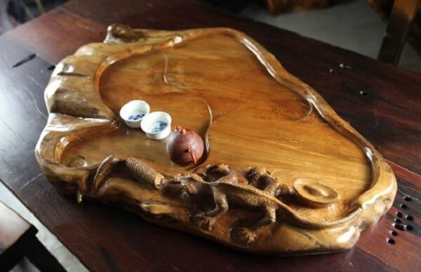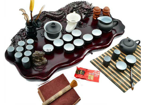 茶盤(pán):茶盤(pán):放置茶壺、茶杯、茶道組、茶玩乃至茶食的淺底器皿,承接泡茶過(guò)程中流出或倒掉的水。