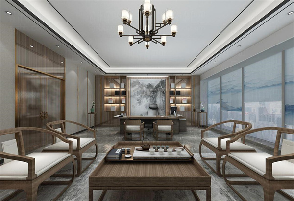 董事長辦公室裝潢設(shè)計采用的新中式風(fēng)格,環(huán)境采用白色和原木色的搭配使用,突出董事長氣質(zhì),沉穩(wěn)的同時又不失時尚。