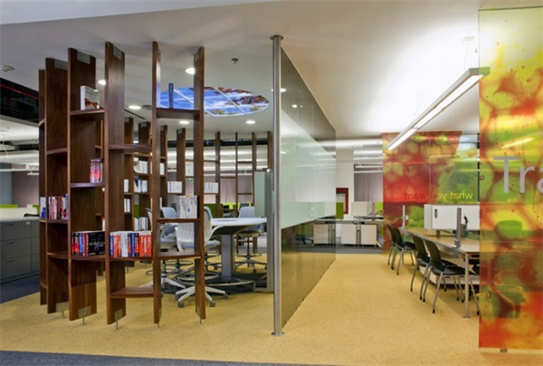2、某互聯(lián)網(wǎng)公司辦公空間設(shè)計(jì):在辦公室的不同區(qū)域里,有幾面用切割過的石材、木材、以及軟墊和玻璃裝飾成的墻壁,這顯得特有個(gè)性。總之,這是一個(gè)對到訪者來說溫暖怡人,對員工來說能夠振奮身心的地方。這樣一個(gè)辦公場所既要像家一般舒適,又要滿足工作的實(shí)際需要,這的確不太容易。