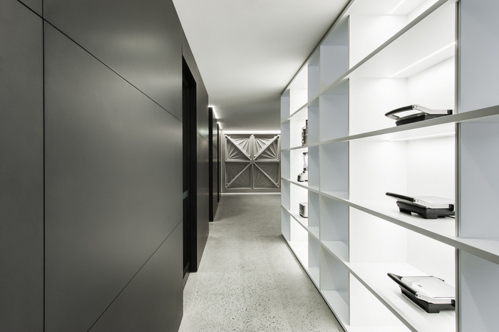 ? ? 家具折疊,顯示臺(tái)和架子都是移動(dòng)的工作場(chǎng)所的靈活性進(jìn)一步支持由一個(gè)智能音頻視覺系統(tǒng)。當(dāng)你通過工作場(chǎng)所的活動(dòng)測(cè)試廚房和工程領(lǐng)域已被納入在一般辦公區(qū)內(nèi)的每個(gè)品牌類別。這些都是直接連接到合作的“貓走”的設(shè)計(jì),特別是讓產(chǎn)品設(shè)計(jì)人員,技術(shù)工程師和食品技術(shù)人員共同努力,產(chǎn)品開發(fā)。這樣的方式來(lái)規(guī)劃新的布雷維爾和允許球隊(duì)之間的異花授粉和傳播。該工作場(chǎng)所包括一個(gè)廣泛的模型車間附件原型,消防和生命測(cè)試實(shí)驗(yàn)室和3D打印室。