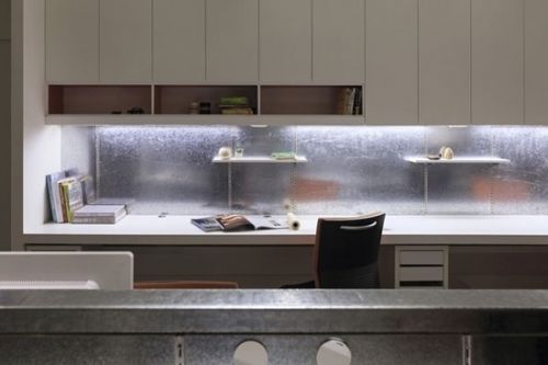 編輯點(diǎn)評(píng):辦公室入口的面積相對(duì)較小,設(shè)計(jì)師很巧妙地采用矩形瓷磚、并且在末端采用深色瓷磚進(jìn)行裝飾,顯出放射狀,有放大視覺效果的功能。