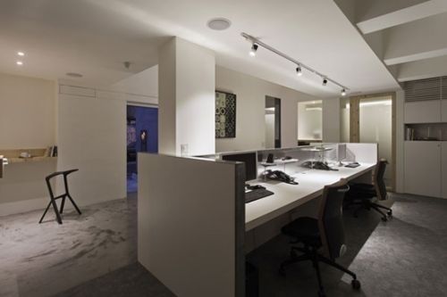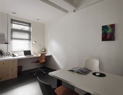 編輯點(diǎn)評(píng):用矮墻隔斷出辦公區(qū)與公共區(qū),整體色調(diào)風(fēng)格一致,不脫離簡(jiǎn)約風(fēng)的主題。