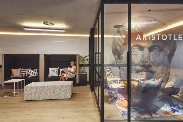 今天,上海裝修公司-領(lǐng)企裝飾要與大家分享的就是一間十分符合“頭腦風(fēng)暴”辦公室裝修設(shè)計。設(shè)計師通過打造一個共享靈動的辦公空間,同時**化的引入城市景觀。作為一家戰(zhàn)略咨詢公司,辦公環(huán)境不僅要能促進(jìn)精誠合作、分享觀點,還必須營造一個熱情活力、激發(fā)靈感的工作氛圍。設(shè)計通過一系列造型各異、大大小小的思想實驗室來達(dá)成這一構(gòu)想,同時每間都配有手寫白板,以及可操作的墻體和印刷玻璃雙折門。