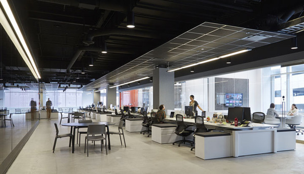 首先,拆除所有沿窗而設(shè)的獨(dú)立辦公室,所有會(huì)議室都裝上透明的落地玻璃。打開(kāi)后的開(kāi)放空間擁有良好的自然光線(xiàn)。開(kāi)放的辦公理念也有利于促進(jìn)團(tuán)隊(duì)合作和臨時(shí)發(fā)起的頭腦風(fēng)暴。