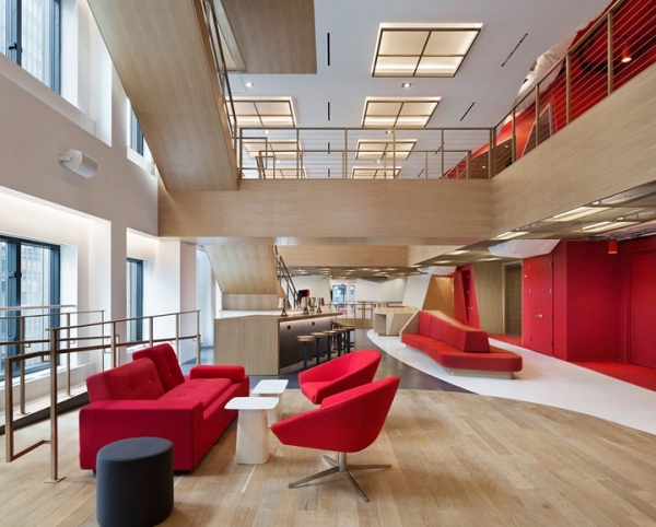 今天,上海辦公室裝修-領(lǐng)企裝飾要與大家分享的是,聞名全球的陽(yáng)獅集團(tuán)(Publicis Group)位于北美紐約的辦公室裝修設(shè)計(jì)。設(shè)計(jì)師打破摩天大樓固有的結(jié)構(gòu)形式,打造了一個(gè)具有視覺(jué)延續(xù)性的內(nèi)部空間,巧妙的創(chuàng)建一個(gè)元素統(tǒng)一的有機(jī)工作社區(qū)。