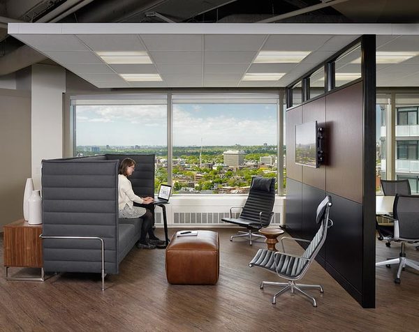 高管區(qū)域的設計,設計師希望為他們創(chuàng)建一個靈活的辦公場地。
