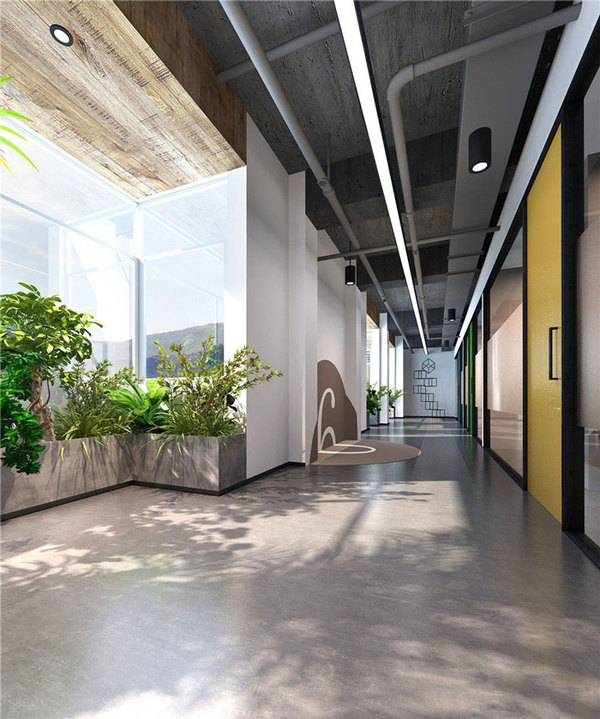 過道區(qū)域的設計:設計師在設計的時候,以點綴為主要設計目的,硬裝之余以綠植做為主要的點綴飾物,將自然很好的引入室內(nèi)。