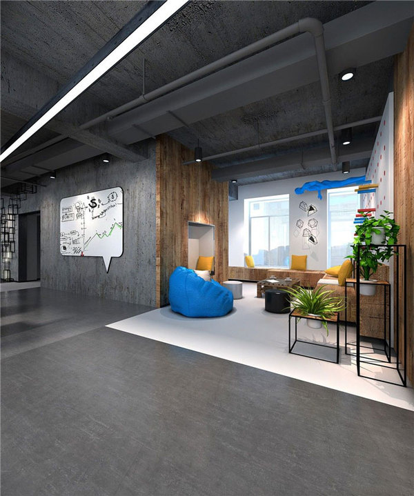 休息區(qū)域的設計:設計師在的時候,將其安置在一個寧靜的角落,一則利用其空間自帶的屬性,二則為員工打造安逸、舒適、可以暫時忘卻煩惱的休息空間。