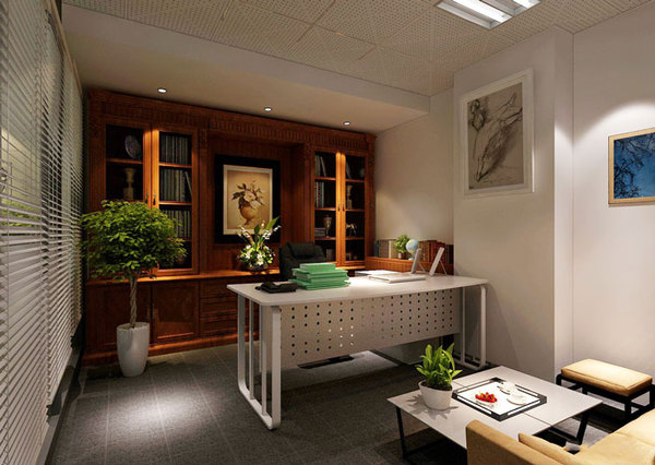 經理辦公室的設計,設計師在設計的時候,對空間的設計留有很大的余力,由于空間面積的限制,使空間無法容納過多的設計,設計師所能做的就是刪繁就簡。