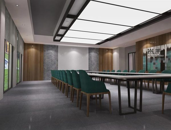 此處會議室設(shè)計有所不同,因為其地址在負一層,設(shè)計師除了要保證本身的功能與格局外,還需要特別注意燈光的布置,設(shè)計師的目標(biāo)就是布置的簡單大氣且?guī)в猩虡I(yè)氣息。