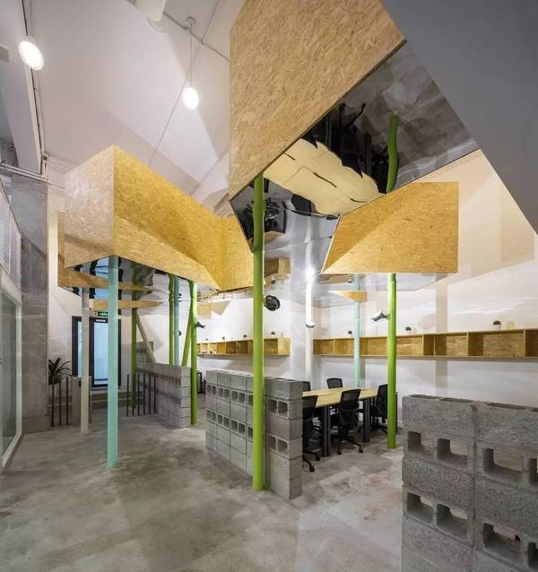 建筑**特點的是由鐵架搭建外包歐松板,并由一些鐵的支柱承托抬升到夾層的高度的“云座”休閑吧,其擺脫室內(nèi)透視主導(dǎo)的造型,以及隱藏結(jié)構(gòu)之后整體的漂浮感,為室內(nèi)創(chuàng)造了一個脫離工作取得休閑環(huán)境。