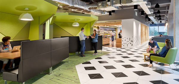 奧斯汀氣候溫和、陽光充足,享有“世界現(xiàn)場音樂之都”的美譽(yù),并有“小硅谷”之美名。設(shè)計(jì)將充滿活力的城市文化氛圍和環(huán)境的舒適性融入到空間的設(shè)計(jì)概念中,由此打造了開放的辦公理念、愜意的休閑咖啡、以及充滿能量的協(xié)作空間。這里還為員工提供超級(jí)棒的福利,美國大受歡迎的“Whole Foods Market”有機(jī)食品連鎖超市也在這里設(shè)了點(diǎn),還有該超市的招牌美味咖啡提供給員工。