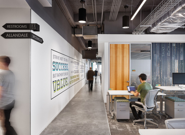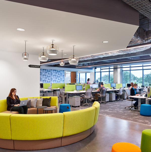 Bazaarvoice奧斯汀總部共設(shè)有14個(gè)開放共享的協(xié)作工作區(qū),每一處都充滿視覺張力令人流連忘返,獨(dú)特的紋理地毯、花色壁紙和創(chuàng)意燈具讓每一處都是滿滿的精彩。從平面規(guī)劃、空間設(shè)計(jì)、到家具配置、照明設(shè)計(jì)、以及室內(nèi)所有的圖形和標(biāo)識(shí)設(shè)計(jì),全部由lauckgroup設(shè)計(jì)團(tuán)隊(duì)一手打造,從而呈現(xiàn)出**的空間效果。