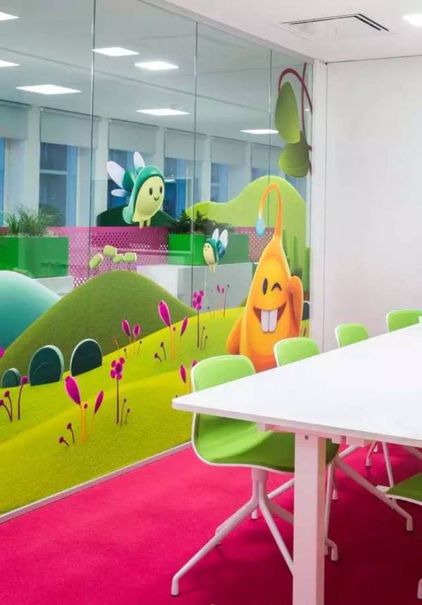 游戲開發(fā)商國王(“糖果粉碎傳奇”的創(chuàng)造者)聯(lián)系設(shè)計師開發(fā)他們的新辦公室概念,其結(jié)果是一個色彩鮮艷的辦公室。