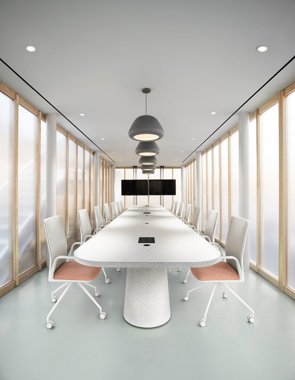 Gruppo Campari對于多倫多辦公室的設計要求十分簡單,即創(chuàng)造一個充分體現(xiàn)公司精神并且可以激發(fā)使用者靈感的空間。Campari標志性的海報有上百年歷史,種類豐富,充滿創(chuàng)意。建筑師從海報和食材中提取顏色、圖案以及形狀,并將它們層層重疊,直到形成一個平衡的三維空間。