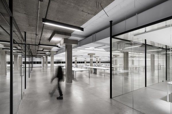 這個(gè)黑白灰的經(jīng)典工業(yè)風(fēng)格就是 Accesolab位于墨西哥的辦公室設(shè)計(jì)了?;疑谶@里的使用程度只能用一個(gè)詞來(lái)形用——鋪天蓋地。從天花板到地面,從燈具到桌椅板凳,無(wú)不是用各種明暗程度不一的灰色裝飾。但是設(shè)計(jì)師選用了帶有線條的地毯和直線延伸的吊頂,辦公室空間的工業(yè)氣息一下鋪面而來(lái)。