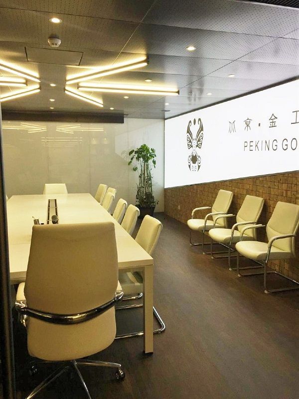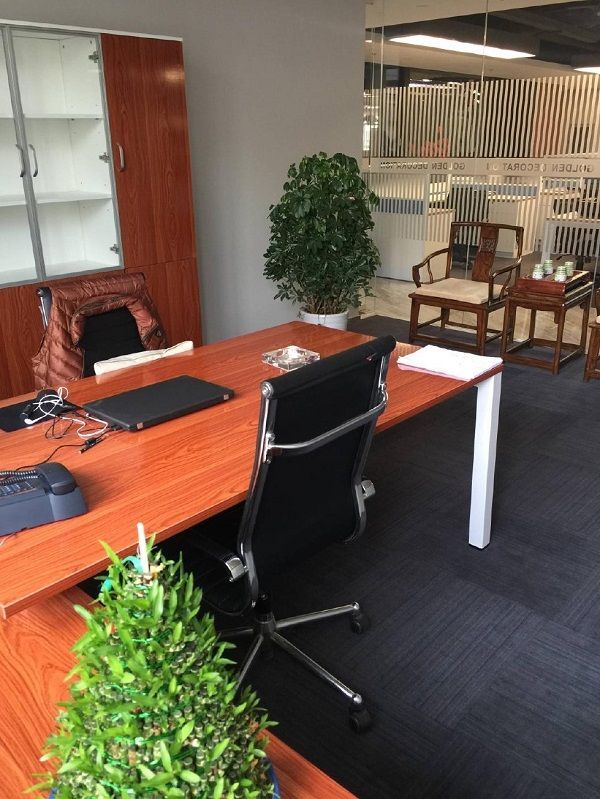 緊接著看到的是貴賓接待區(qū),這一部分的辦公室設(shè)計分為兩塊。一塊是中式雕花桌椅搭配屏風(fēng)樣式的辦公室隔斷,另一部分則是現(xiàn)代風(fēng)格的皮質(zhì)包邊椅子搭配木質(zhì)簡單書柜。這兩個部分的辦公室設(shè)計各具特色,但又在顏色上互相搭配,使得整個辦公室設(shè)計更加和諧。