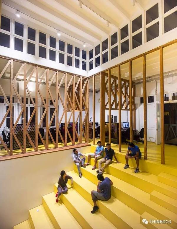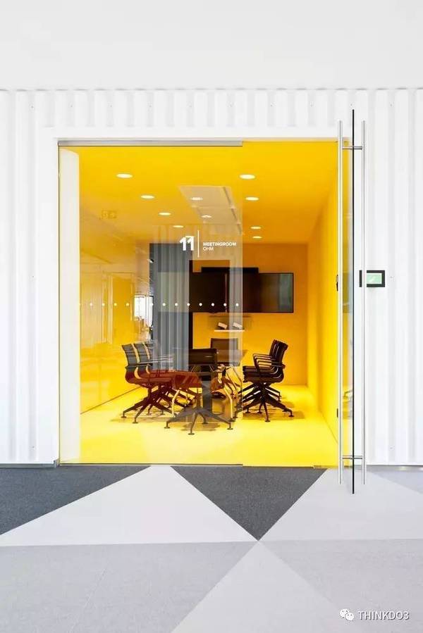 這些辦公室使用了大面積的黃色,看完整個心情都變得明亮起來了。。。
