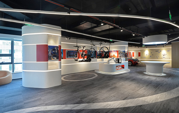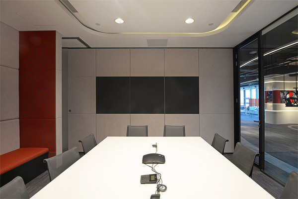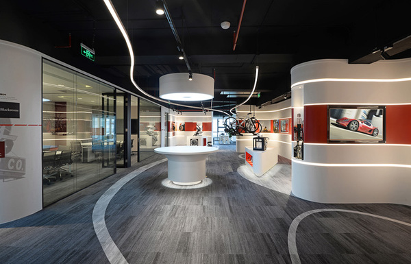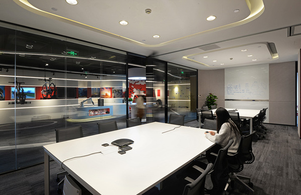 上海領(lǐng)企創(chuàng)裝飾公司分享的這套網(wǎng)絡(luò)科技辦公室裝修設(shè)計圖中,辦公室前臺及展廳的設(shè)計采用了弧形墻體,墻體上的弧形燈帶、天花上的吊燈以及不同顏色地毯拼接而產(chǎn)生曲線元素貫穿整個展廳空間,帶來極強的視覺延伸感。配合了VR等互動體驗裝置,以及實體產(chǎn)品,為訪客帶來富有科技感的體驗感受。提高空間的功能性和使用效率,大會議室可以在需要的時候由移動隔斷分割為兩個獨立的會議室使用。下面領(lǐng)企設(shè)計創(chuàng)裝飾公司小編帶大家看一下1200科技公司辦公室裝修案例!