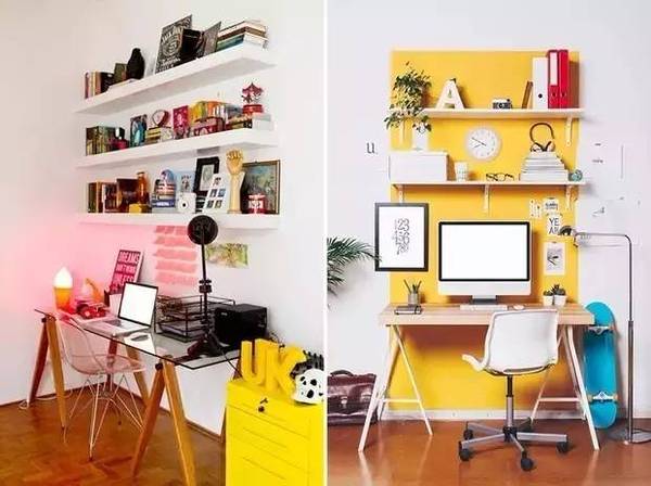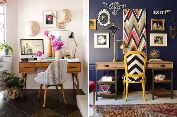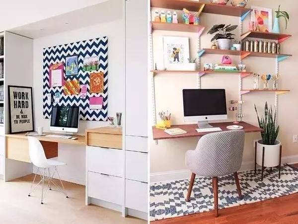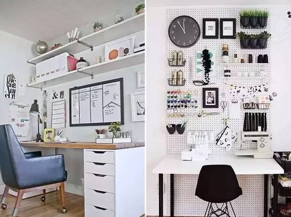 自由職業(yè)或是平時(shí)的工作沒有很強(qiáng)烈的需求的話,那就把它打扮的創(chuàng)意滿滿吧!像軟木墻或是任務(wù)墻這種墻面裝飾**是吸睛的打扮~