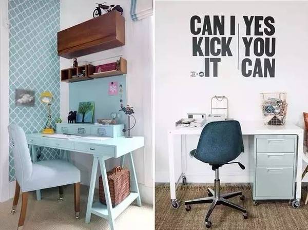 如果家里沒有專門的房間做office的話,在臥室或是客廳的一角也不錯(cuò)哦~這樣不但能合理利用空間,還能讓你松弛得當(dāng),勞逸結(jié)合。