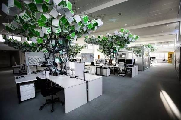 辦公室有36個(gè)工作場(chǎng)所、大量的會(huì)議室以及一間可以容納30人的培訓(xùn)室和很多的服務(wù)于團(tuán)隊(duì)工作的空間。在辦公室設(shè)計(jì)中,色彩是采用的經(jīng)典的黑白搭配,但是這其中*引人注意的是公共辦公區(qū)域的類似大樹(shù)的設(shè)計(jì)?!按髽?shù)”的主干是由簡(jiǎn)單的鐵架組成,樹(shù)冠是有一些印有公司logo的正方體構(gòu)成。從遠(yuǎn)處看就像是生長(zhǎng)茂密的大樹(shù)一般,十分形象。
