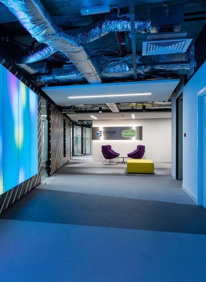 精美的空間構造和細節(jié)處理,令人深刻印象。在灰色和白色的純凈基調(diào)里,注入了純美的紫色、亮黃和綠色,塑造出一個時尚摩登且又有著唯美意境的現(xiàn)代辦公空間。**實現(xiàn)客戶的愿景,為員工與訪客創(chuàng)建了一個激蕩思維的靈感空間。