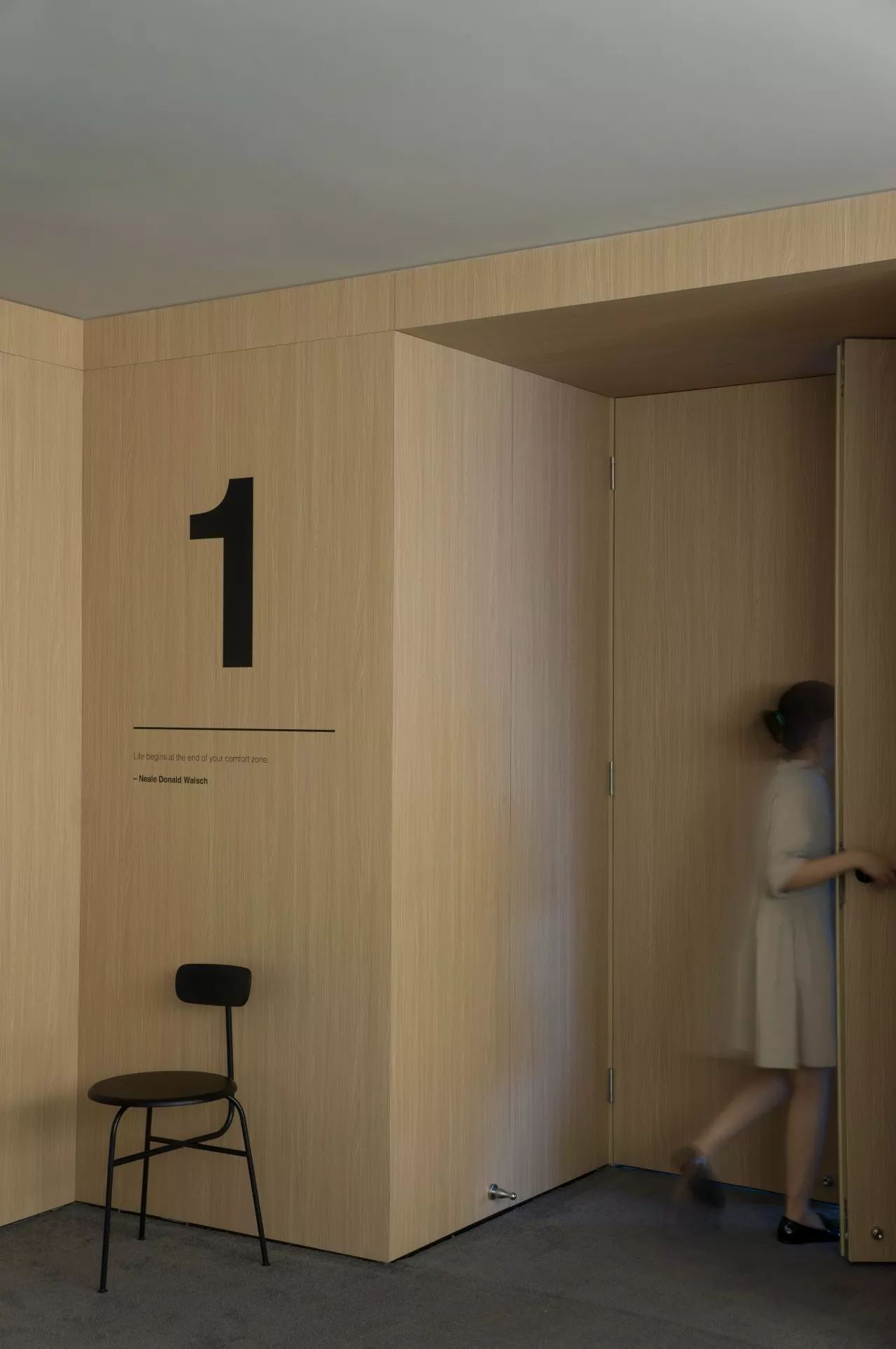 每個(gè)單獨(dú)的盒子,被賦予簡單純粹的色彩和材質(zhì),比如包裹墻面和天花的彩色吸音毛氈,有效降低與其他區(qū)域的相互干擾,實(shí)現(xiàn)**的聲學(xué)效果。人在里面活動時(shí),空間和人的關(guān)系,以及人與人的關(guān)系變得更緊密而有趣,同時(shí)獲得一種沉浸式的空間體驗(yàn),使討論或工作變的更放松和專注。